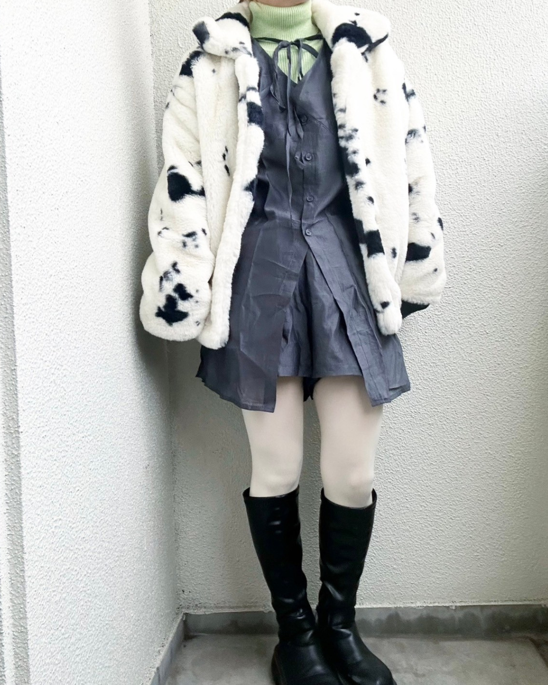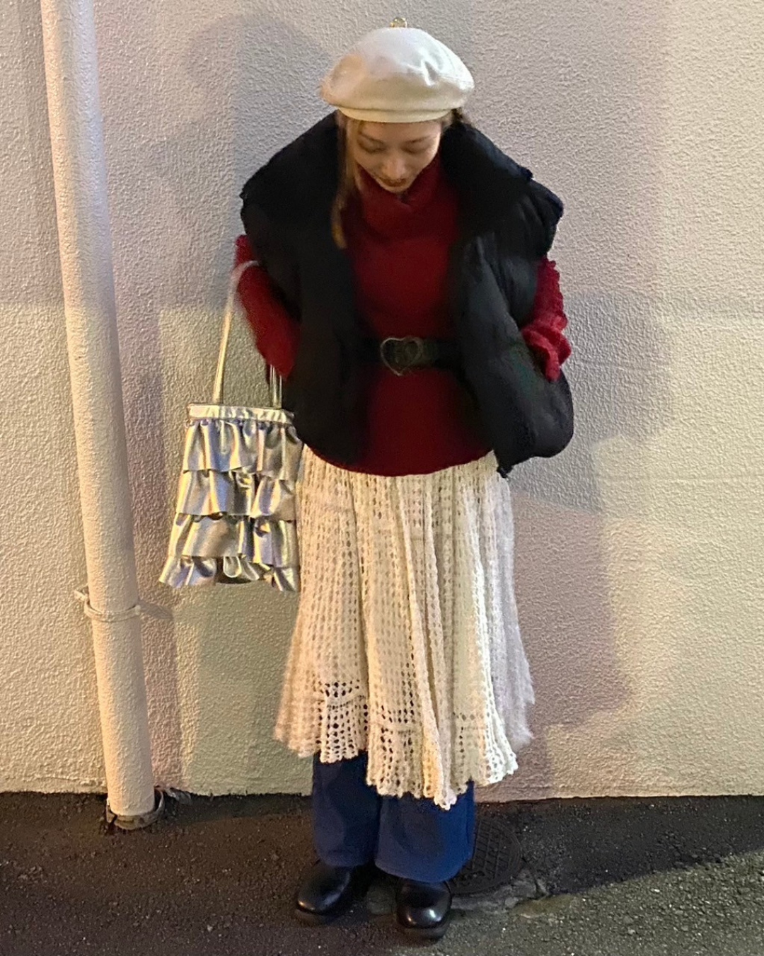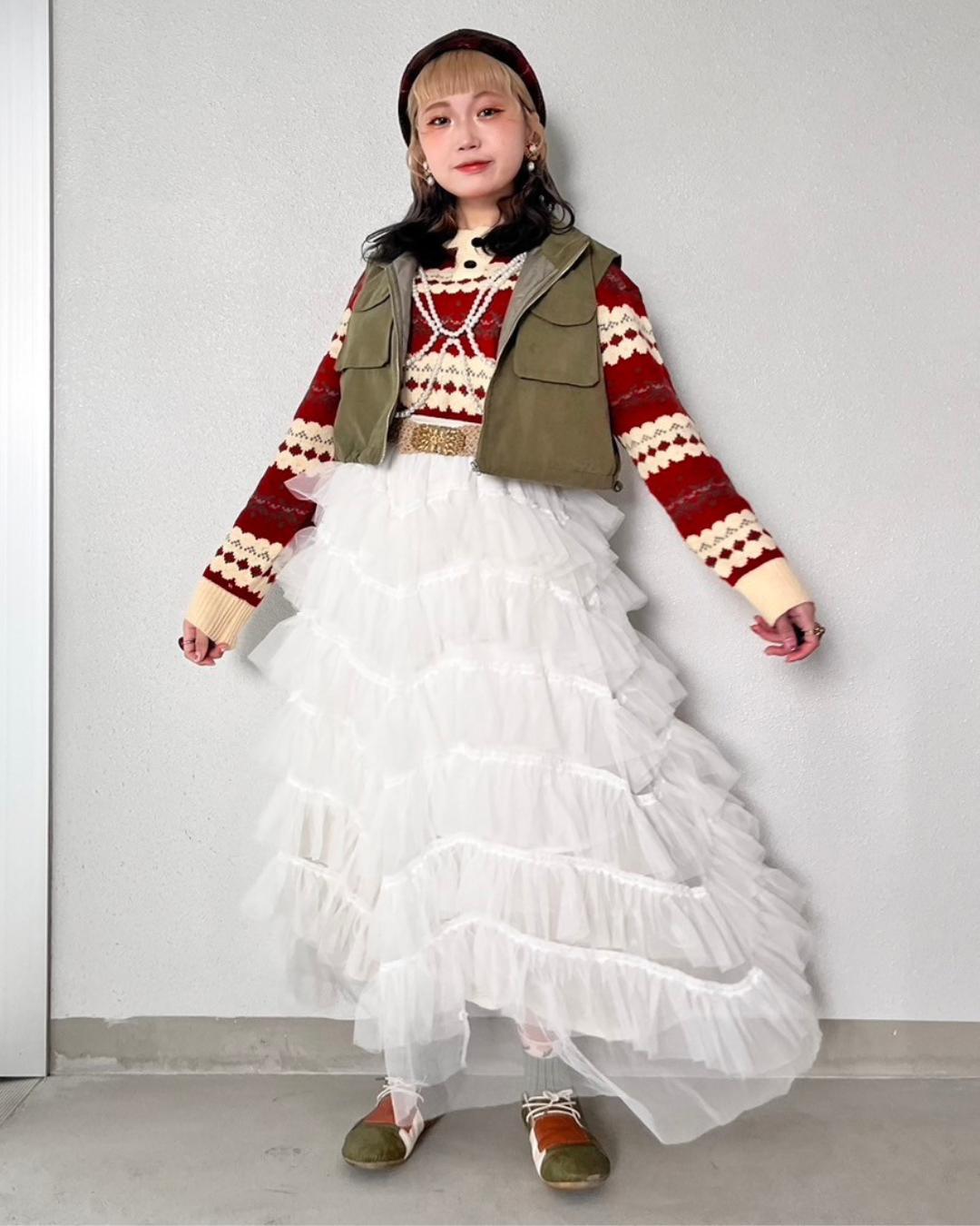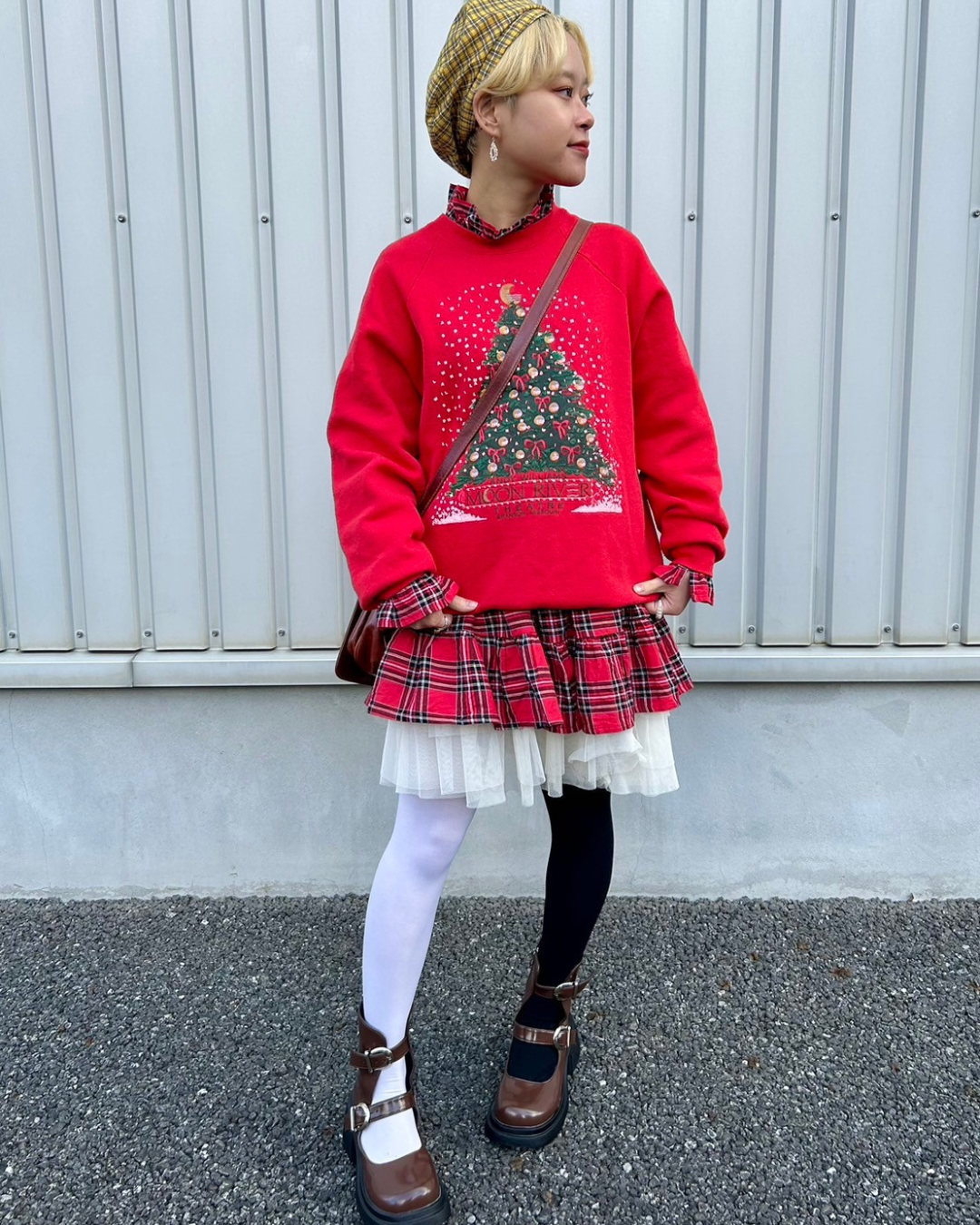 ワンピースは古着のクリスマススウェットにも相性抜群🎅