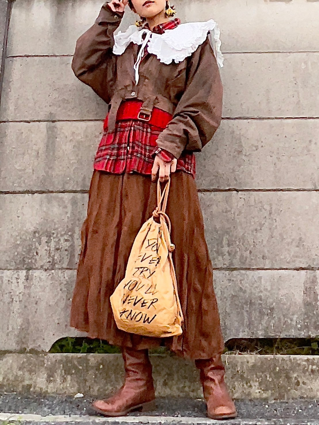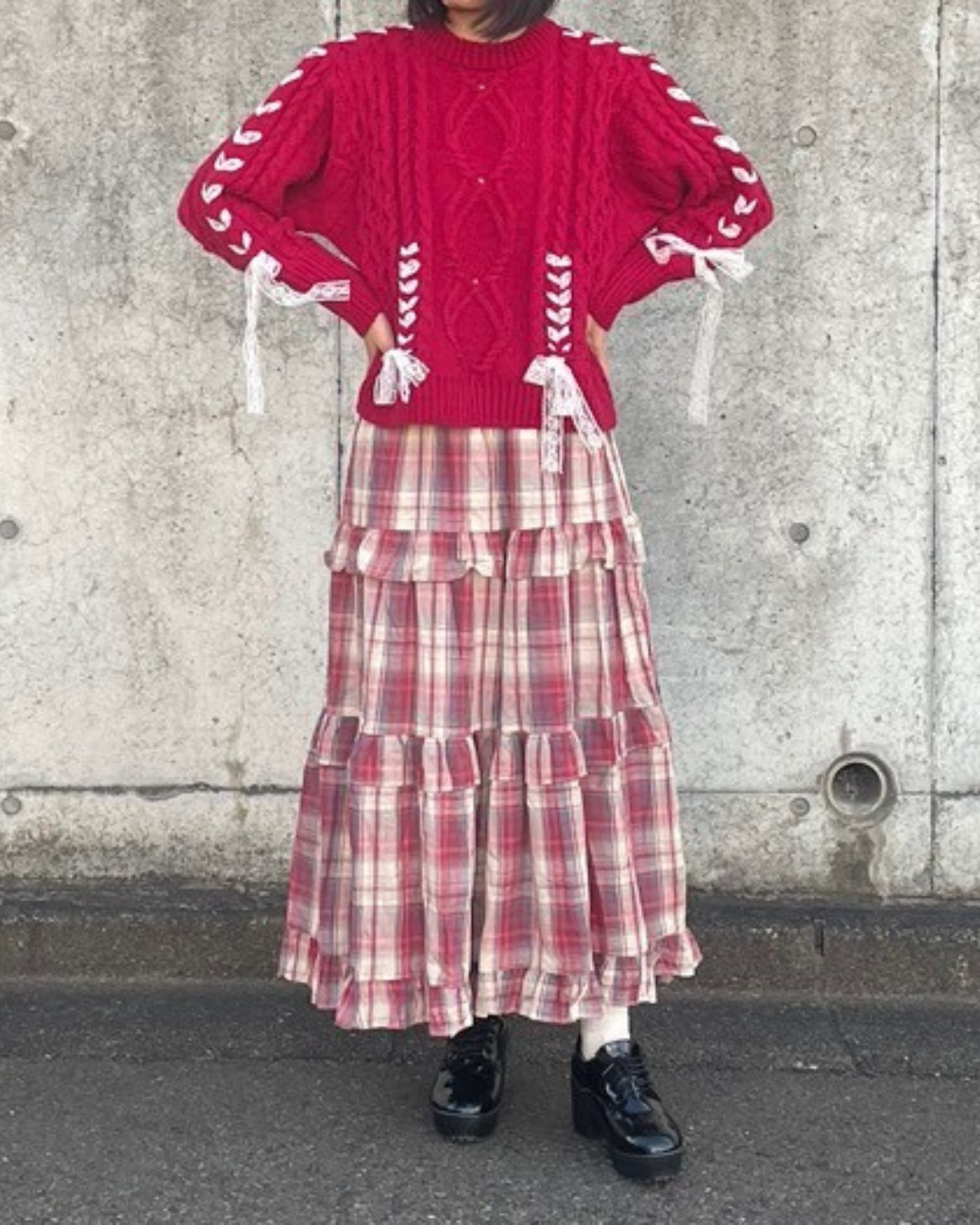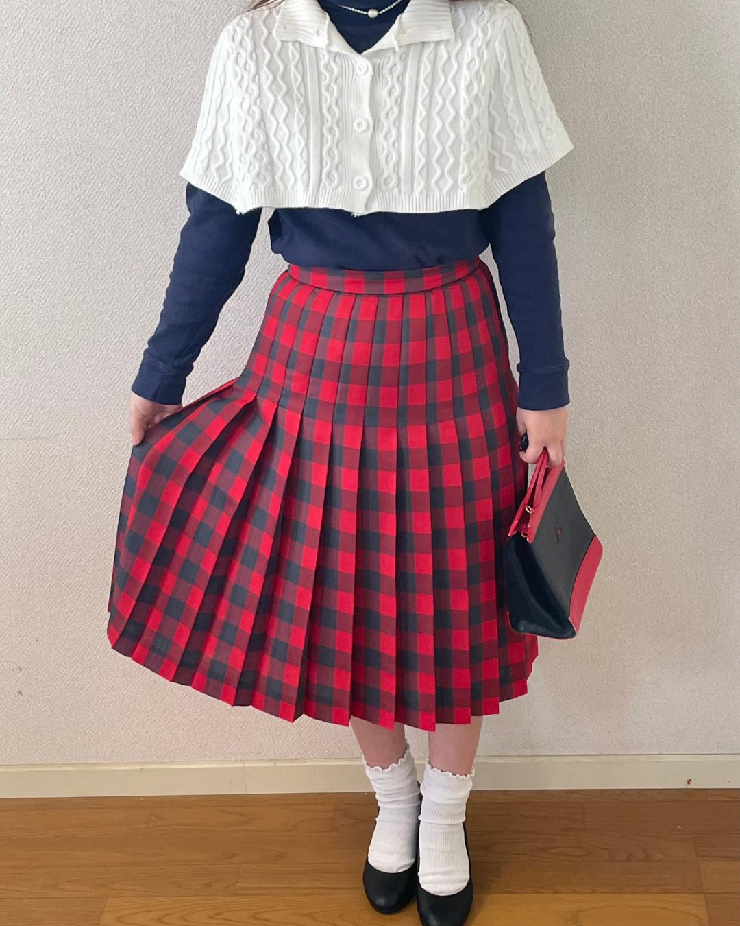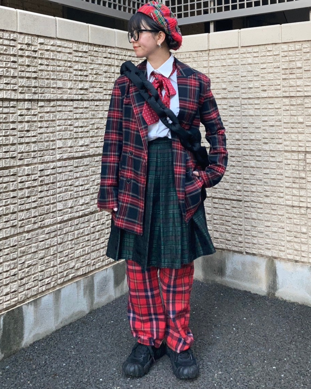 2色のタータンチェック柄をたくさん取り入れてコーデを組みました🌟