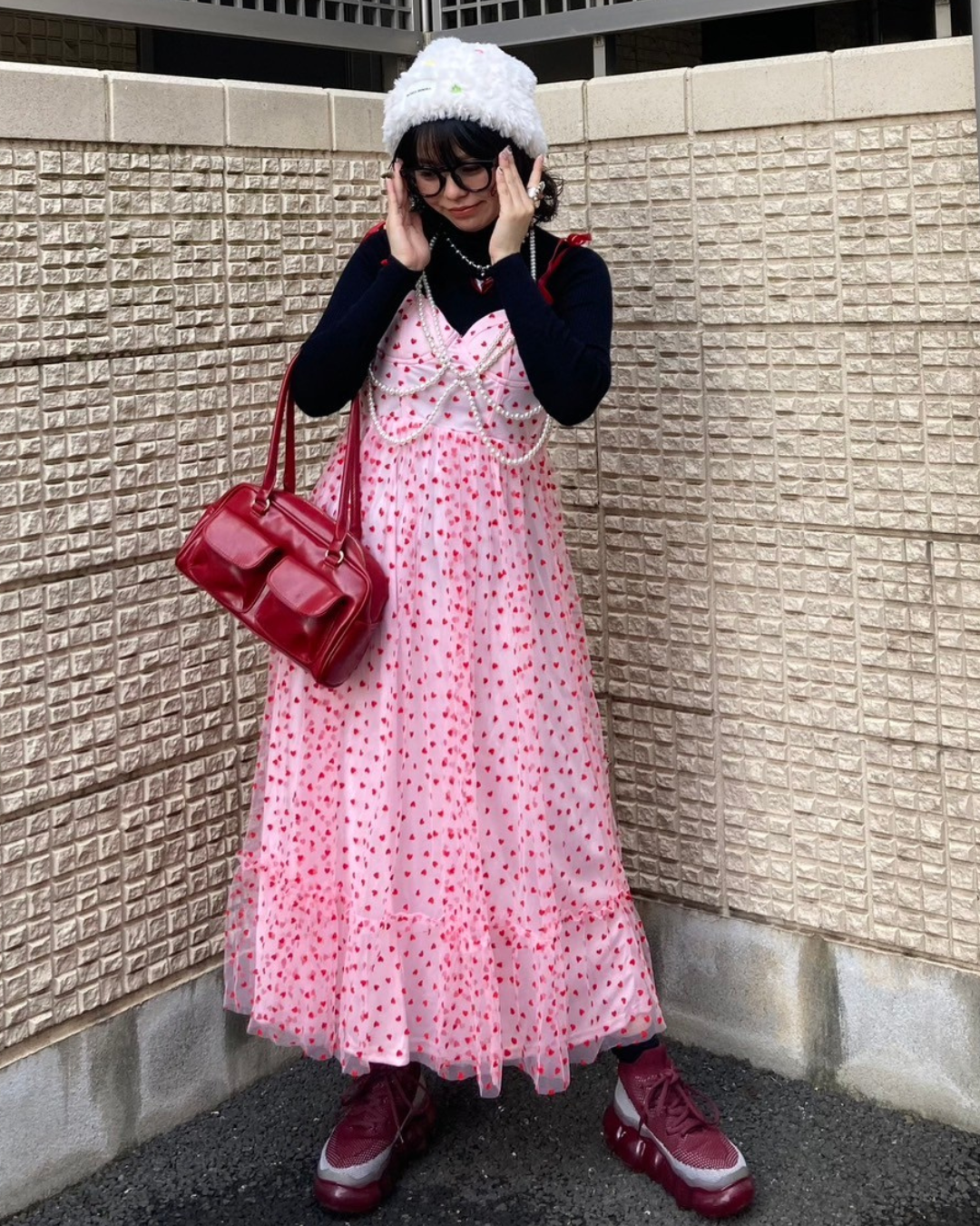 クリスマスカラーである赤と、華やかなハートのチュールドレスを合わせました🎅🏻