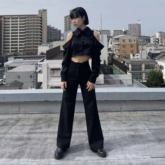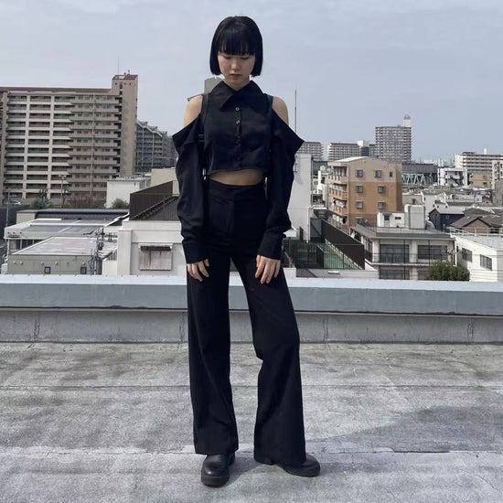 カットアウトシャツが可愛い♡この春に大活躍まちがいなし!!ショート丈なのでハイウエストパンツと合わせるのがオススメ。