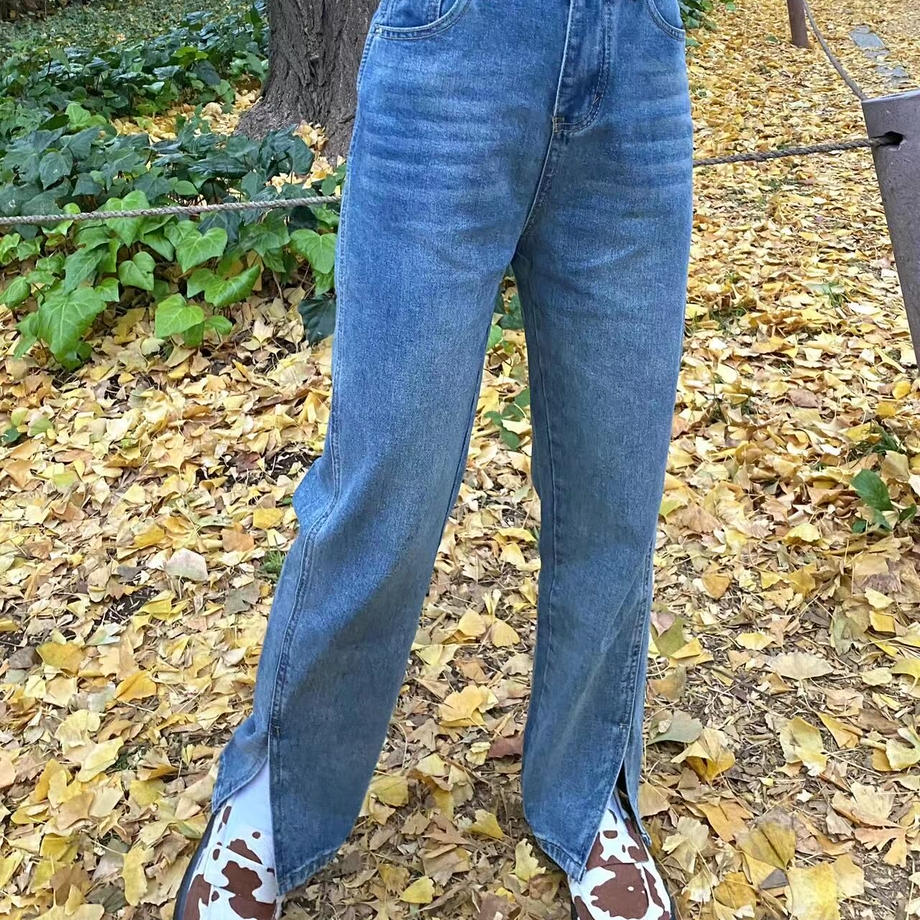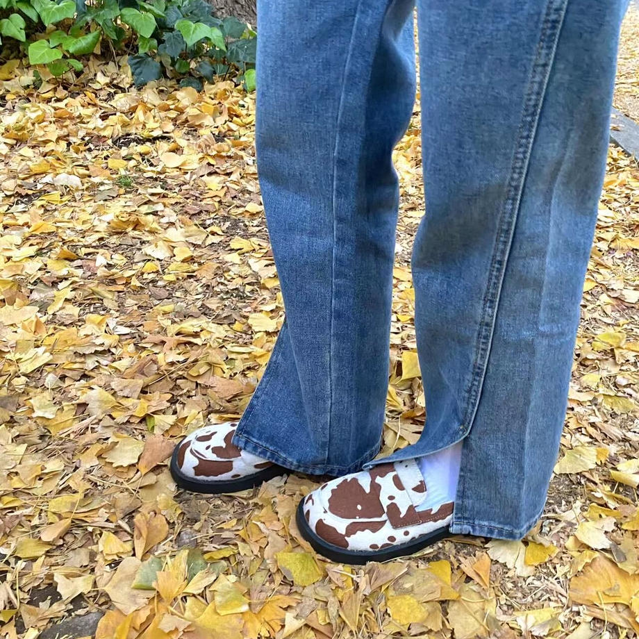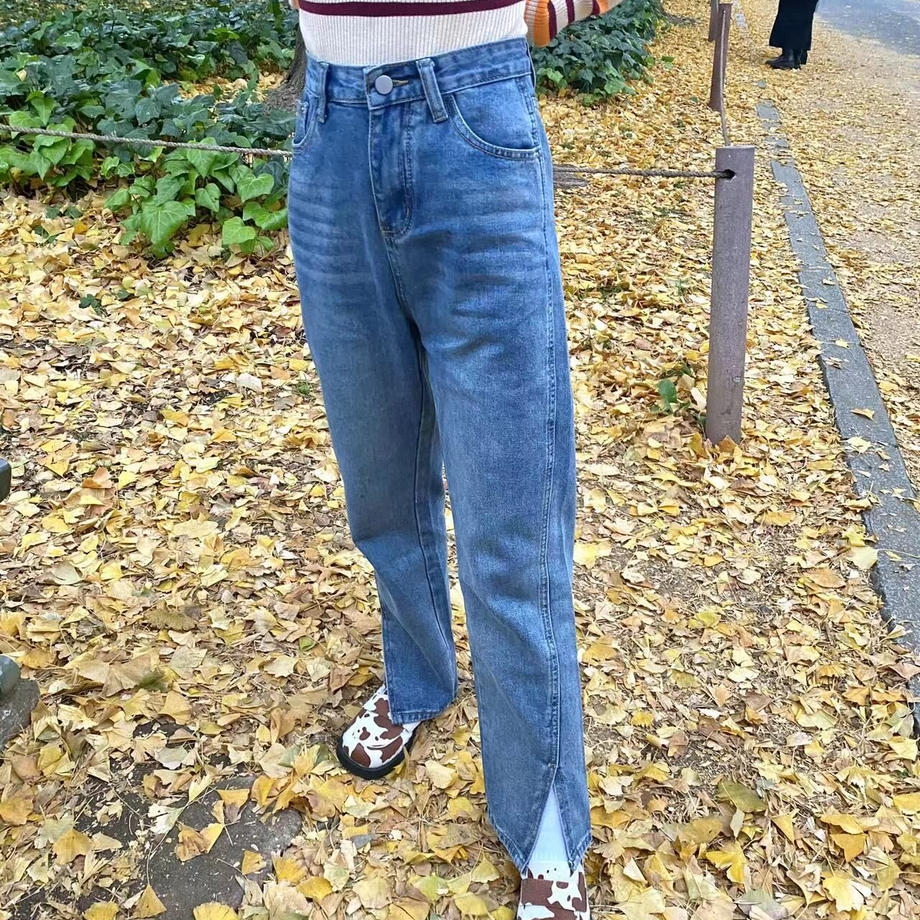 プラスで足元にスリットが入ってよりフロントから見ると長く細く見えるアイテムとなっています。